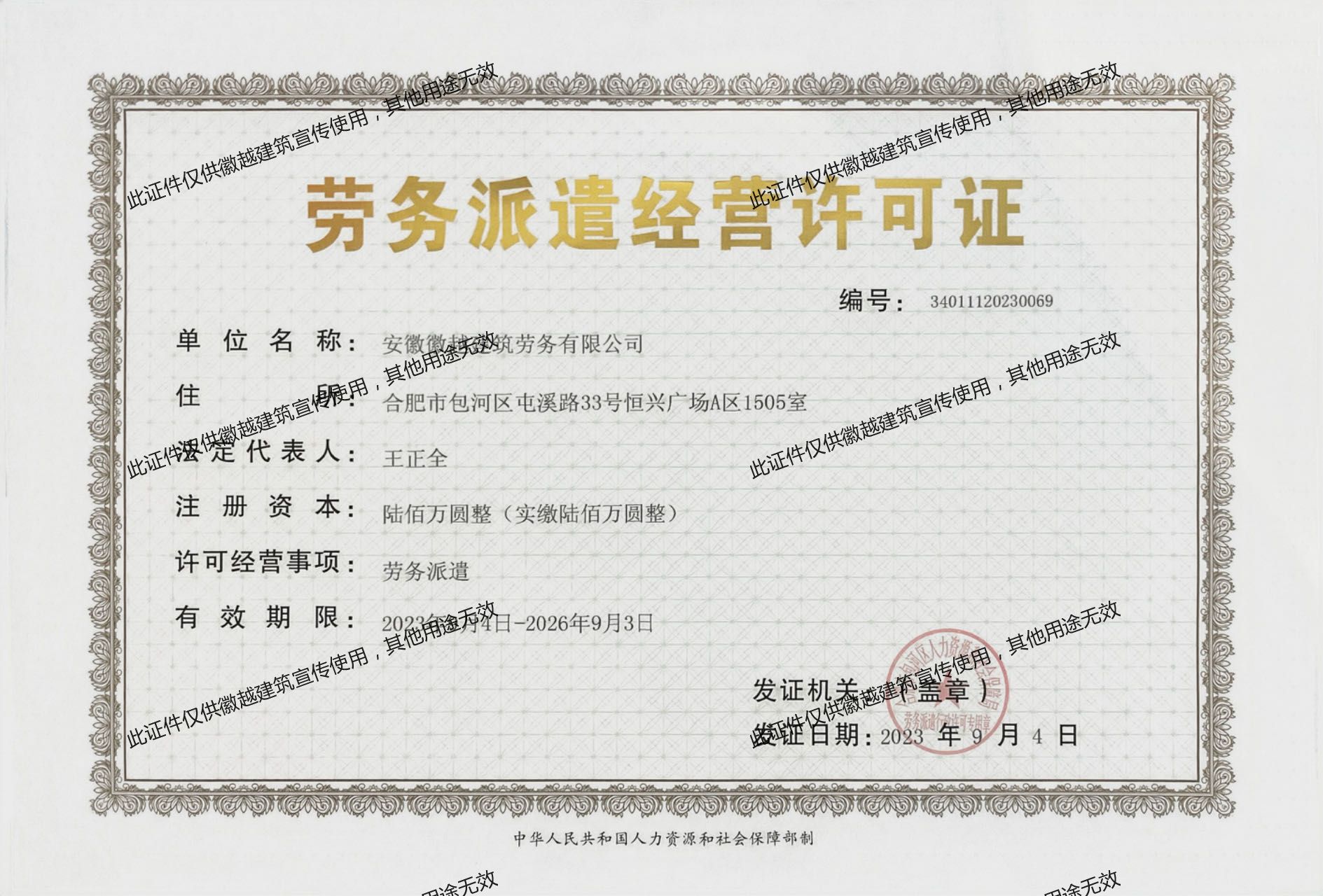 ·公司名稱:安徽徽越建筑勞務有限公司